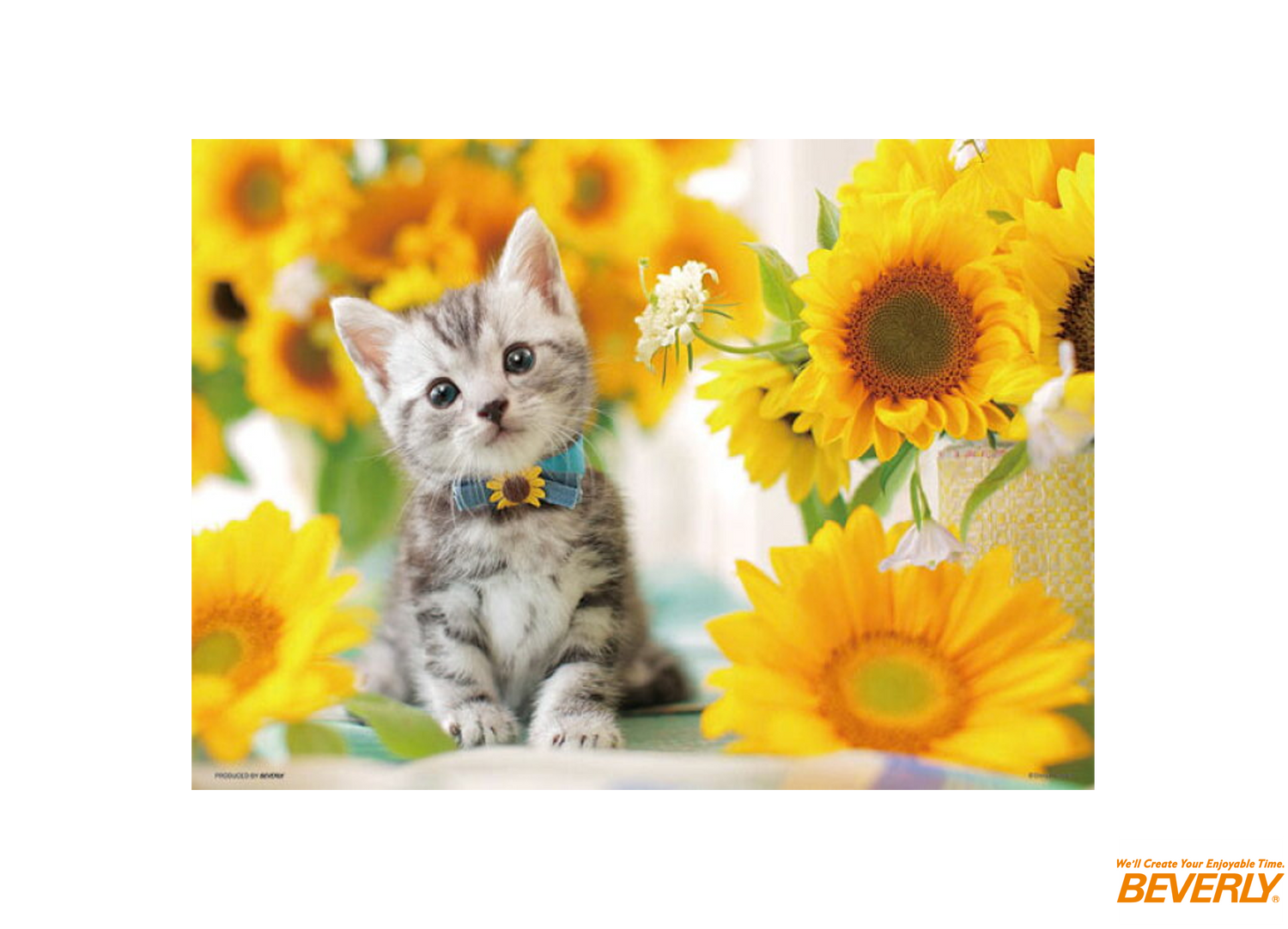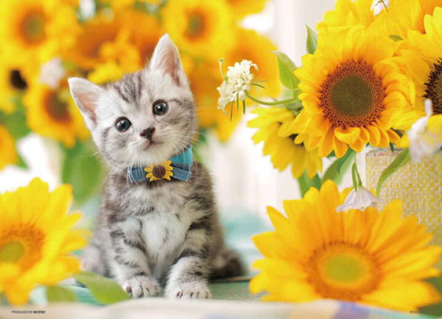 - 色彩感豐富的向日葵包圍着可愛小貓,充滿萌萌傻氣。