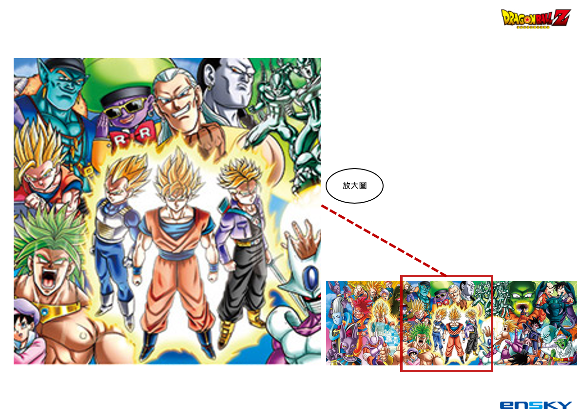- 年代紀 系列描繪了Z勇士的軌跡, 第三彈是從劇場版【七龍珠Z】到【七龍珠Z 神與神】中的著名場景合成一幅拼圖。