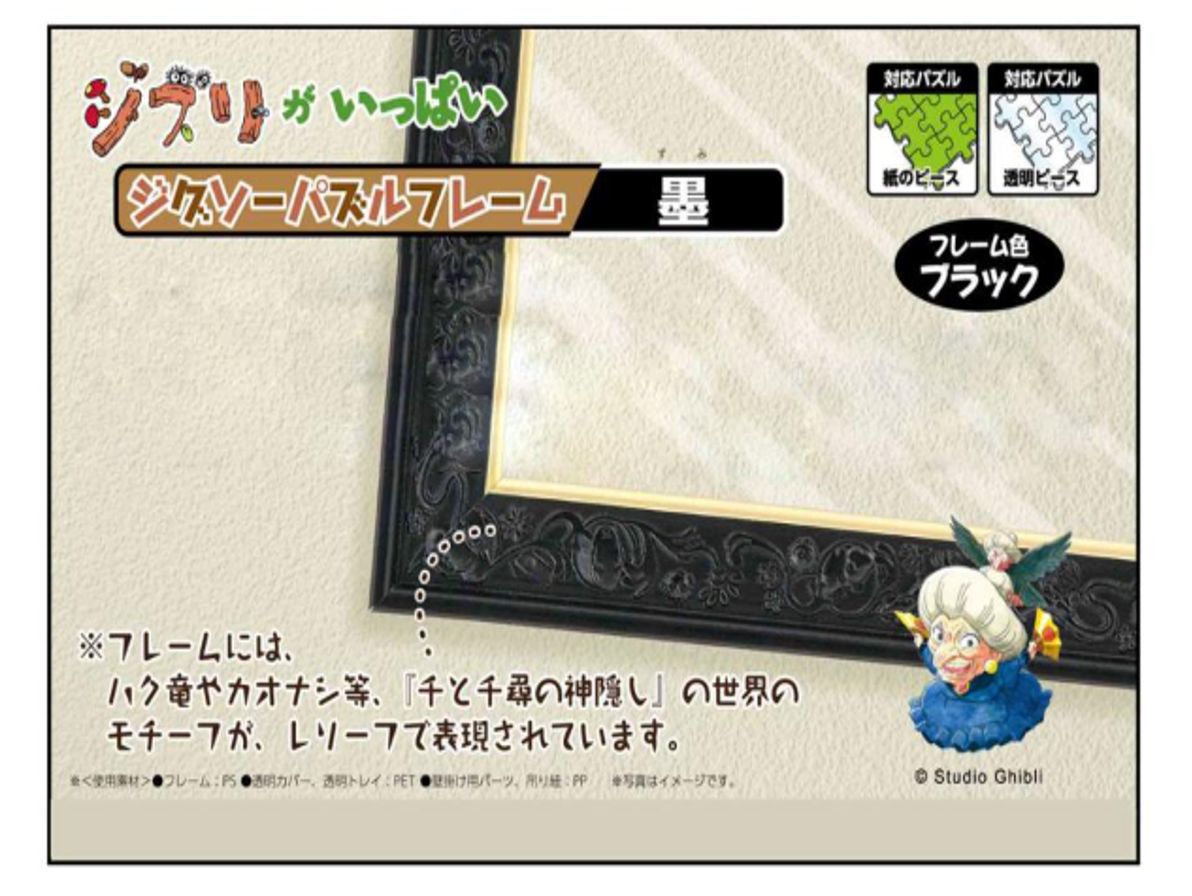 鏡框表面以“Ghibli作品”的世界為主題進行了浮雕處理,框架以浮雕形式表達了“千與千尋”世界的主題,如白龍和神無。